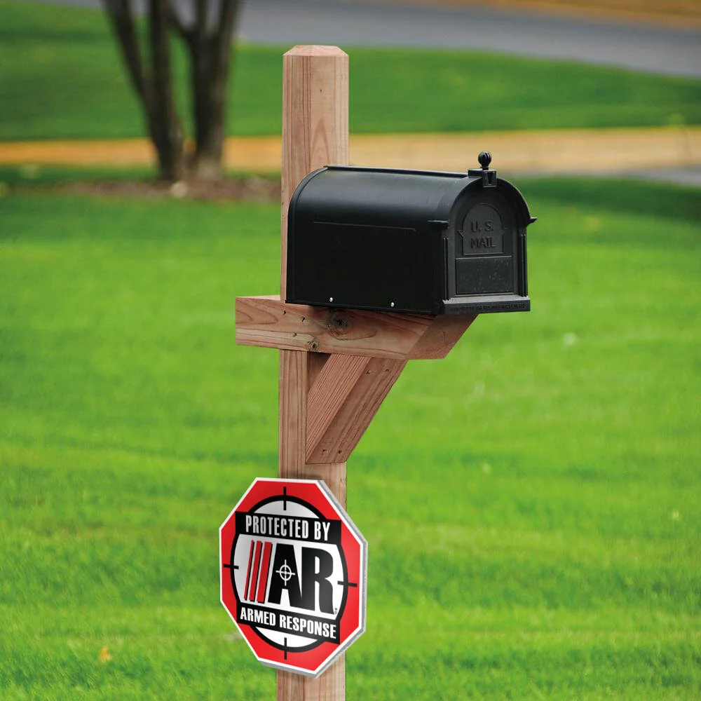 Shop Shop Security Yard Sign $19.95 Window Decal $5.00 Security Yard Sign & Decal Bundle $29.95 Mailbox Security Bundle $29.95 Armed Response Logo Tee $25.00